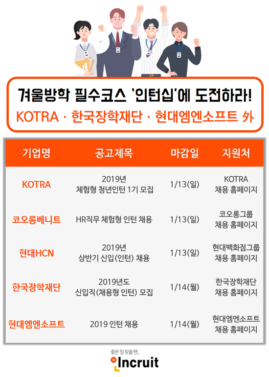 ´ëÇѹ«¿ªÅõÀÚÁøÈï°ø»ç(KOTRA), 1¿ù 13ÀÏ(ÀÏ)±îÁö 2019³â üÇèÇü û³âÀÎÅÏ 1±â ¸ðÁý