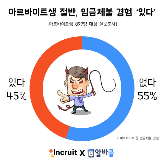 ¾Æ¸£¹ÙÀÌÆ®»ý Àý¹Ý ²Ã·Î ÀÓ±ÝüºÒ °æÇèÀÌ ÀÖ¾ú°í, Æò±Õ üºÒ¾×Àº ¿ù ±Þ¿©ÀÇ 40%¿¡ ´ÞÇß´Ù. ÀÎÅ©·çÆ®°¡ ¿î¿µÇÏ´Â ¾Æ¸£¹ÙÀÌÆ® O2O Ç÷§Æû ¾Ë¹ÙÄÝ(´ëÇ¥ ¼¹Ì¿µ albacall.incruit.com)ÀÌ ¾Æ¸£¹ÙÀÌÆ®»ý 899¸íÀ» ´ë»óÀ¸·Î ÁøÇàÇÑ ¼³¹®Á¶»ç °á°ú´Ù.