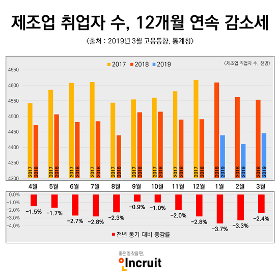 Á¦Á¶¾÷ Ãë¾÷ÀÚ ¼ö 1³â ¿¬¼Ó ¡®°¨¼Ò¼¼¡¯¡¦ °í¿ë ¡®»¡°£ºÒ¡¯