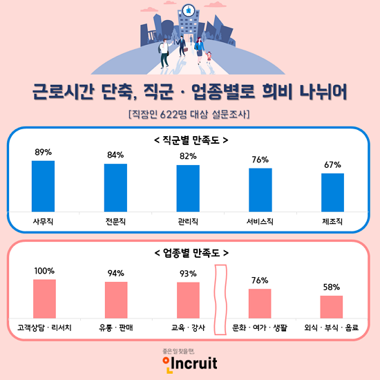 ÁÖ 52½Ã°£Á¦ µµÀÔÀ¸·Î Á÷ÀåÀεéÀÇ »îÀÇ Áú º¯Èµµ Á÷±º¤ý¾÷Á¾º°·Î Èñºñ°¡ °¥·È´Ù. Ãë¾÷Æ÷ÅÐ ÀÎÅ©·çÆ®(´ëÇ¥ ¼¹Ì¿µ www.incruit.com) ¼³¹®Á¶»ç °á°ú´Ù.