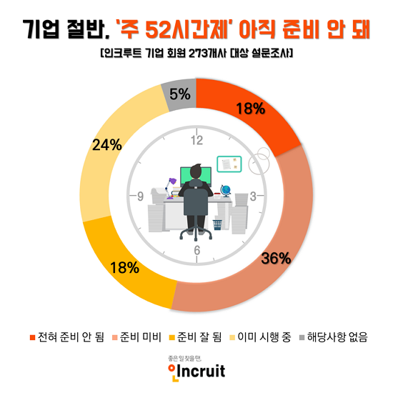 ³»³â ÁÖ 52½Ã°£Á¦ÀÇ Àü¸é ½ÃÇàÀ» ¾ÕµÎ°í ÀÖÁö¸¸ ÀÌ¿¡ ´ëóÇÏ´Â ±â¾÷µéÀÇ Áغñµµ´Â ¾ÆÁ÷ ¹ÌºñÇÑ °ÍÀ¸·Î ³ªÅ¸³µ´Ù. ¾ÆÁ÷ Àý¹Ý°¡·®ÀÇ ±â¾÷Àº Áغñ°¡ ¾È µÇ¾îÀÖ´Â °ÍÀ¸·Î ³ªÅ¸³µ±â ¶§¹®. Ãë¾÷Æ÷ÅÐ ÀÎÅ©·çÆ®(´ëÇ¥ ¼¹Ì¿µ www.incruit.com)°¡ 273°³»ç¸¦ ´ë»óÀ¸·Î ¼³¹®Á¶»ç ÇÑ °á°ú´Ù.