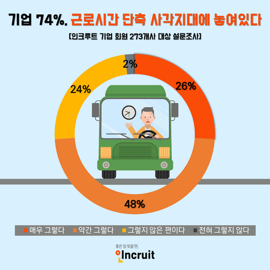Àü±¹ ¹ö½º³ëÁ¶ ÃÑÆÄ¾÷ÀÌ ³»ÀÏ·Î ¿¹°íµÇ¾ú´Ù. ±âÁ¸ÀÇ ÁÖ52½Ã°£Á¦ Àû¿ë Á¦¿Ü Ư·Ê¾÷Á¾À̾úÁö¸¸ ±Ù·Î±âÁعý °³Á¤À¸·Î ÀÎÇØ °á±¹ »ç°¢Áö´ë°¡ ¹ß»ýÇÑ °Í ¾Æ´Ï³Ä´Â ÇØ¼®ÀÌ ³ª¿À´Â °¡¿îµ¥, ¼³¹® Á¶»ç °á°ú ±â¾÷ 10°÷ Áß 7°÷Àº ¸¶Âù°¡Áö·Î Àڽŵ鵵 ±Ù·Î½Ã°£ ´ÜÃà »ç°¢Áö´ë¿¡ ¼ÓÇÑ´Ù°í ¿ì·ÁÇϰí ÀÖ´Â °ÍÀ¸·Î ³ªÅ¸³µ´Ù. Ãë¾÷Æ÷ÅÐ ÀÎÅ©·çÆ®(´ëÇ¥ ¼¹Ì¿µ www.incruit.com)°¡ ±â¾÷ 273°÷À» ´ë»óÀ¸·Î ¼³¹® Á¶»ç¸¦ ½Ç½ÃÇÑ °á°ú´Ù.