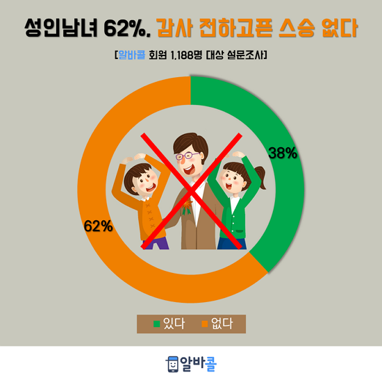 ¸ÕÀú, ½º½ÂÀÇ ³¯ °¨»ç¸¦ ÀüÇÏ°í ½ÍÀº ¡®Àλý ½º½Â¡¯ÀÌ ÀÖ´ÂÁö ¹°Àº °á°ú, ¡®(Ưº°È÷) ¾ø´Ù¡¯¿Í ¡®ÀÖ´Ù¡¯°¡ °¢°¢ 62% ´ë 38%·Î Áý°èµÆ´Ù. 5¸í Áß 2¸íÀº °¨»ç Àλ縦 ÀüÇÒ ½º½ÂÀÌ ÀÖ´Ù°í ´äÇßÁö¸¸, ³ª¸ÓÁö 3¸íÀº ±×·² ¸¸ÇÑ ½º½ÂÀÌ ¾ø´Ù°í ´äÇÑ °Í. Àλý ½º½ÂÀÌ ÀÖ´Ù°í ´äÇÑ ÀÀ´äÀÚ´Â ¿©¼º(63%)ÀÌ ³²¼º(59%)º¸´Ù ¼ÒÆø ¸¹¾Ò´Ù.