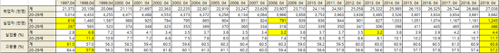 <Ç¥1. Ãë¾÷Æ÷ÅÐ ÀÎÅ©·çÆ®°¡ Áö³ 1997³â ÀÌÈÄ ÇöÀç±îÁöÀÇ °í¿ëµ¿ÇâÀ» ¿¬µµº°·Î »ìÆìº¸¾Ò´Ù>