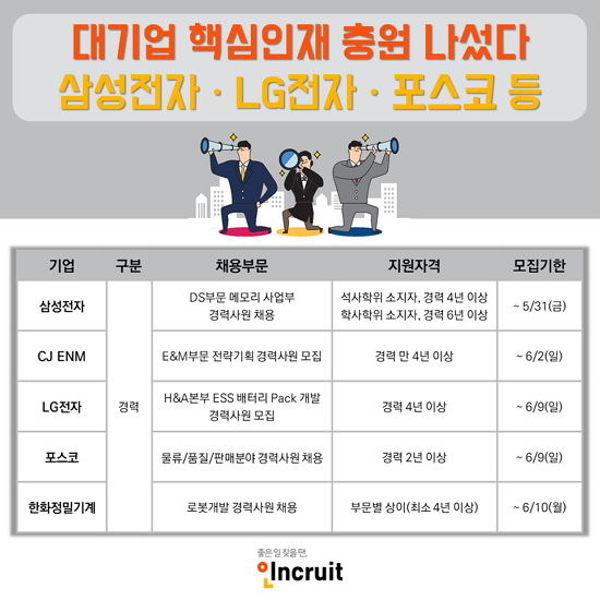 ´ë±â¾÷ Çٽɻç¾÷ºÎ¹® ¡®ÀÎÀç ¼öÇ÷ Áß¡¯¡¦»ï¼ºÀüÀÚ¤ýLGÀüÀÚ¤ýÆ÷½ºÄÚ èâ »ó¹Ý±â °æ·Â»ç¿ø ¸ðÁý!