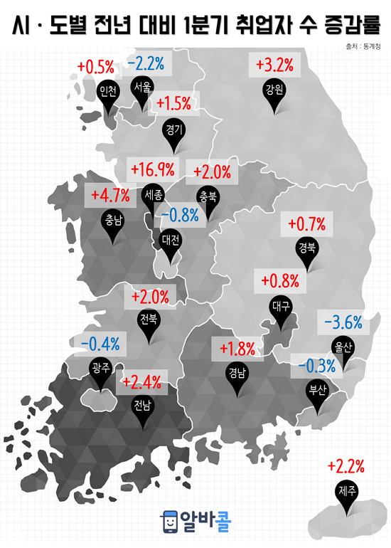 1ºÐ±â Ãë¾÷ÀÚ ¼ö Áõ°¡À² »ìÆìº¸´Ï¡¦1À§ ¡®¼¼Á¾¡¯, ²ÃÂî ¡®¿ï»ê¡¯