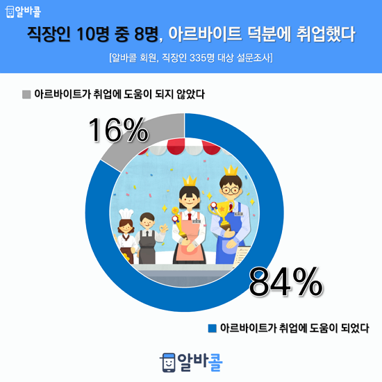 ¾Æ¸£¹ÙÀÌÆ®°¡ Ãë¾÷¿¡ µµ¿òÀÌ µÉ±î? ¼³¹® °á°ú, Á÷ÀåÀÎ 84%´Â ¡®¾Æ¸£¹ÙÀÌÆ®°¡ Ãë¾÷¿¡ µµ¿òÀÌ µÆ´Ù¡¯¶ó°í ÀÀ´äÇß´Ù. ¹Ù·Î¸éÁ¢ ¾Ë¹Ù¾Û ¾Ë¹ÙÄÝ(albacall.incruit.com ´ëÇ¥ ¼¹Ì¿µ)ÀÌ Á÷ÀåÀÎ 335¸í°ú ´ëÇлý 283¸íÀ» ´ë»óÀ¸·Î ¼³¹® Á¶»çÇÑ °á°ú´Ù.