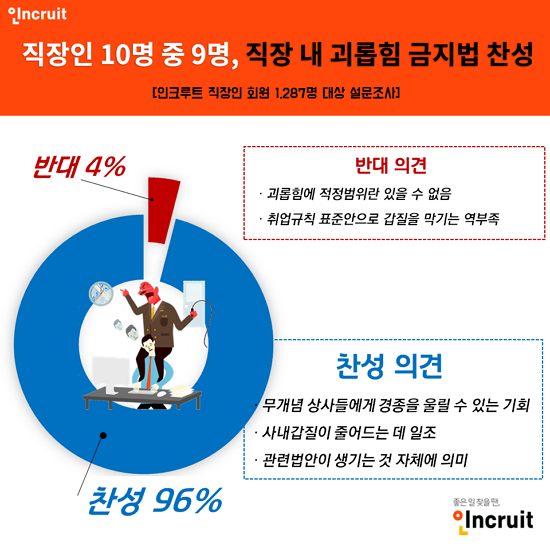 <±×¸². ÀÎÅ©·çÆ® Á¶»ç°á°ú, Á÷ÀåÀÎ 10¸í Áß 9¸íÀº Á÷Àå ³» ±«·ÓÈû ±ÝÁö¹ý¿¡ ´ëÇØ Âù¼ºÇÏ´Â °ÍÀ¸·Î ³ªÅ¸³µ´Ù.>