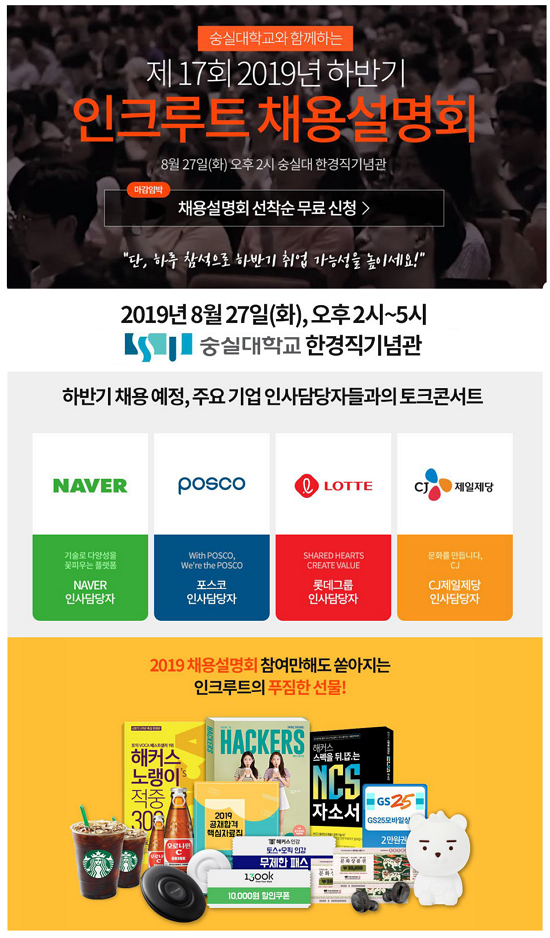 ÀÎÅ©·çÆ®, 2019 ÇϹݱâ ä¿ë¼³¸íȸ °³ÃÖ! ³×À̹ö, Æ÷½ºÄÚ, ·Ôµ¥±×·ì, CJÁ¦ÀÏÁ¦´ç ¡®Âü°¡È®Á¤¡¯
