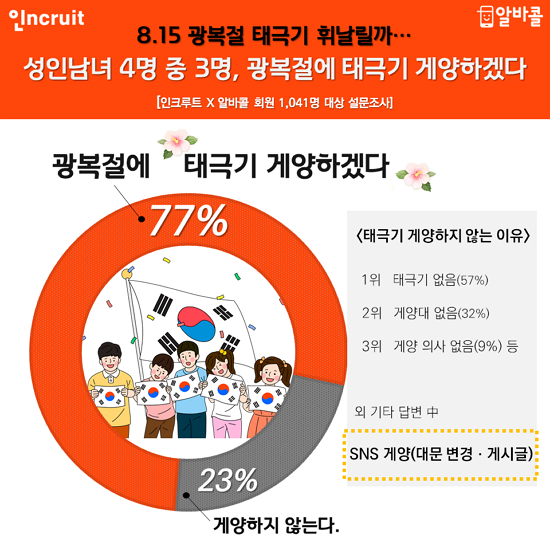Á¦74Áֳ⠱¤º¹ÀýÀ» ¾ÕµÎ°í Ãë¾÷Æ÷ÅÐ ÀÎÅ©·çÆ®(www.incruit.com)°¡ ¹Ù·Î¸éÁ¢ ¾Ë¹Ù¾Û ¾Ë¹ÙÄÝ(albacall.incruit.com)°ú ÇÔ²² ¡®±¤º¹Àý ÅÂ±Ø±â °Ô¾ç °èȹ¡¯¿¡ ´ëÇØ ¼³¹®Á¶»ç¸¦ ½Ç½ÃÇÑ °á°ú´Ù.