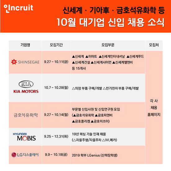<Ç¥. ÀÎÅ©·çÆ®°¡ ÀüÇÏ´Â 10¿ù ´ë±â¾÷ ½ÅÀÔ Ã¤¿ë¼Ò½Ä>