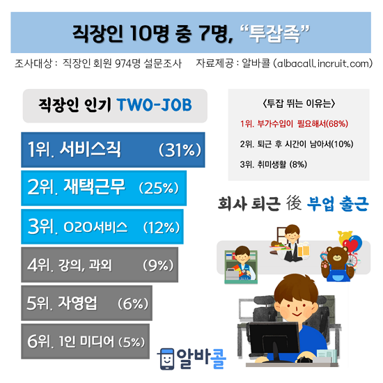 ¿ù±Þ¸¸À¸·Î ¾î¶»°Ô »ì¾Æ¿ä? Á÷ÀåÀÎ 10¸í Áß 7¸í, ÅõÀâ(two-job)Á·