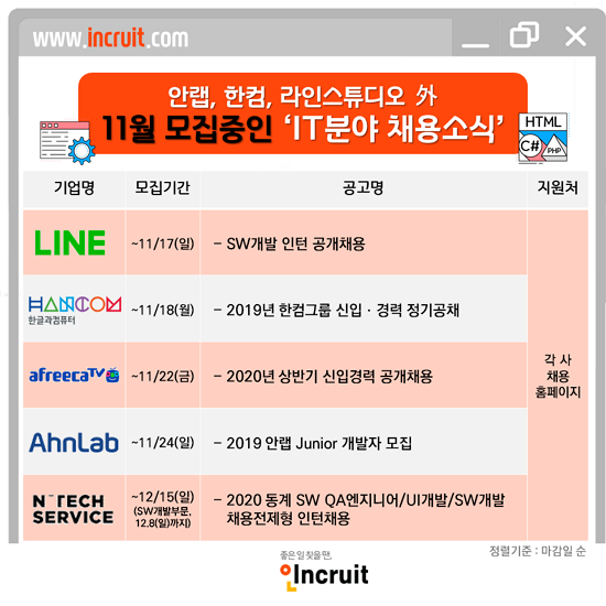 <±×¸². 11¿ù ÇöÀç ¾È·¦, ÇÑÄÄ, ¶óÀÎÇ÷¯½º µîÀÇ ±â¾÷¿¡¼ °³¹ßÁ÷±ºÀ» ä¿ë ÁßÀÌ´Ù.>