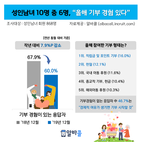 ¼ºÀγ²³à 10¸í Áß 6¸íÀº ¿ÃÇØ ±âºÎ °æÇèÀÌ ÀÖ¾ú´Ù. Àü³â ´ëºñ Çö±Ý ±âºÎ´Â ÁÙ¾úÁö¸¸ Àû¸³±Ý°ú Æ÷ÀÎÆ®¸¦ Ȱ¿ëÇÑ ¾Ë¶ã ±âºÎ°¡ ´Ã¾ú´Ù´Â Á¡ÀÌ Æ¯Â¡ÀÌ´Ù. Ãë¾÷Æ÷ÅÐ ÀÎÅ©·çÆ®°¡ ¿î¿µÇÏ´Â ¹Ù·Î¸éÁ¢ ¾Ë¹Ù¾Û ¾Ë¹ÙÄÝ(albacall.incruit.com ´ëÇ¥ ¼¹Ì¿µ)ÀÌ È¸¿ø 868¸íÀ» ´ë»óÀ¸·Î ÁøÇàÇÑ 2019³â ±âºÎ °æÇ衯 Á¶»ç °á°ú´Ù.