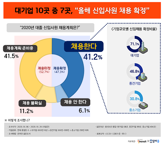 ±×·¸´Ù¸é ¿ÃÇØ ½ÅÀÔä¿ë °èȹÀº ¾î¶°ÇÒ±î? ¡°2020³â ½ÅÀÔ»ç¿ø ä¿ë°èȹÀÌ È®Á¤µÆ´ÂÁö?¡± Áú¹®ÇÑ °á°ú ¡âÈ®Á¤ 47.3% ¡â¹ÌÁ¤ 52.7%·Î °¢°¢ È®ÀεƴÙ.