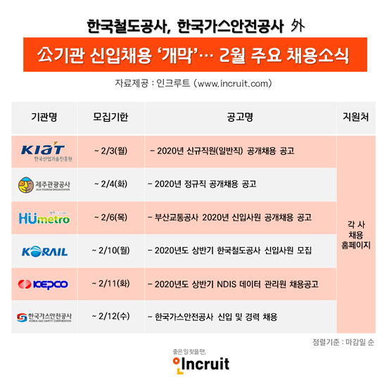 ÀÌ´Þ ÃÊ Á¤ºÎ´Â ¿ÃÇØ ÃÑ 2¸¸5õ¿©¸íÀÇ ½Å±Ôä¿ëÀ» ÇÏ°Ú´Ù°í ¹àÇû´Ù. Áö³ÇØ º¸´Ù 2õ¿©¸í ´Ã¾î³ ±Ô¸ð·Î, ÇöÀç Çѱ¹Ã¶µµ°ø»ç, ºÎ»ê±³Åë°ø»ç, Çѱ¹°¡½º¾ÈÀü°ø»ç µî °ø°ø±â°ü¿¡¼ ´ë°Å ½Å±Ôä¿ëÀÌ ÇÑâÀÌ´Ù. Ãë¾÷Æ÷ÅÐ ÀÎÅ©·çÆ®(´ëÇ¥ ¼¹Ì¿µ www.incruit.com)°¡ 2¿ù¿¡ ¸ðÁýÇÏ´Â ¡®°ø°ø±â°ü ä¿ë ¼Ò½Ä¡¯À» ¾ö¼±ÇØ ÀüÇÑ´Ù.