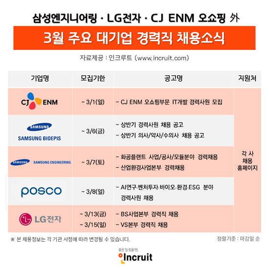 ½ÅÀÔ°øÃ¤ ½ÃÁð¿¡ °æ·ÂÁ÷ ¼öÇ÷ ³ª¼± ´ë±â¾÷µé... »ï¼º¹ÙÀÌ¿À¿¡Çǽº¤ýLGÀüÀÚ¤ýCJ ENM èâ