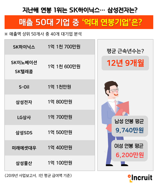 Áö³ÇØ ¸ÅÃâ 50´ë ±â¾÷ °¡¿îµ¥ ¿¬ºÀÅ·Àº SKÇÏÀ̴нº¿´À¸¸ç, 9°÷ÀÇ Á÷¿ø Æò±Õ ±Þ¿©°¡ 1¾ï¿ø ÀÌ»óÀÎ °ÍÀ¸·Î ³ªÅ¸³µ´Ù.