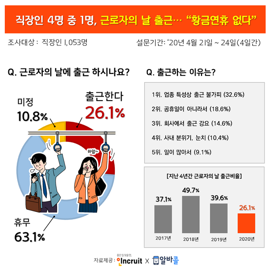 ±Ù·ÎÀÚ 4¸í Áß 1¸íÀº ³ëµ¿Àý¿¡ Ãâ±Ù, ¡°È²±Ý ¿¬ÈÞ ¾ø´Ù¡±