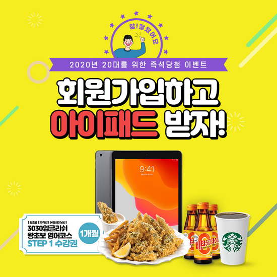 °æÇ°µµ ǪÁüÇÏ´Ù. 12¸¸¿ø »ó´çÀÇ 3030À×±Û¸®½Ã ¿ÕÃʺ¸ ¿µ¾îÄÚ½º 1°³¿ù ¼ö°±ÇºÎÅÍ ¾ÆÀÌÆÐµå 7¼¼´ë, BHC »Ñ¸µÅ¬+Äݶó, ½ºÅ¸¹÷½º ¾Æ¸Þ¸®Ä«³ë ±âÇÁƼÄÜ µî Âü¿©ÀÚ Àü¿ø¿¡°Ô °æÇ°ÀÌ Á¦°øµÈ´Ù. ´Ü, ȸ¿ø°¡ÀÔ ÈÄ 24½Ã°£ À̳» À̺¥Æ®¿¡ Âü¿©ÇØ¾ß ÇÑ´Ù.