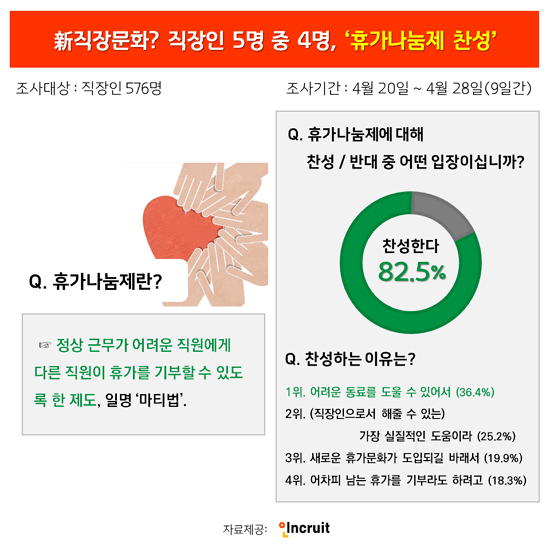 <±×¸². Ãë¾÷Æ÷ÅÐ ÀÎÅ©·çÆ® Á¶»ç°á°ú, Á÷ÀåÀÎ 5¸í Áß 4¸íÀº ¡®ÈÞ°¡³ª´®Á¦¡¯¿¡ ´ëÇØ Âù¼ºÇÏ´Â °ÍÀ¸·Î ³ªÅ¸³µ´Ù.>