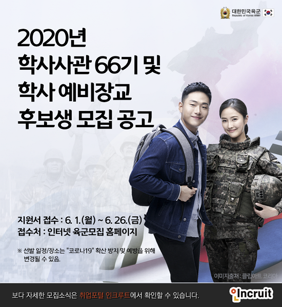 Ãë¾÷Æ÷ÅÐ ÀÎÅ©·çÆ®(´ëÇ¥ ¼¹Ì¿µ www.incruit.com)°¡ ÀÌ´Þ 1ÀϺÎÅÍ ½Ç½ÃÁßÀÎ À°±º Çлç»ç°ü 66±â, ÇÐ»ç ¿¹ºñÀå±³ È帻ý ¸ðÁý ¼Ò½ÄÀ» ¾È³»ÇÑ´Ù. À°±ºÀº Äڷγª ¿©ÆÄ¿¡µµ ºÒ±¸ÇÏ°í ±¹¹æÀη ¿µÀÔÀ» ³ª¼± Àû±ØÀûÀÎ Çຸ¸¦ º¸À̰í ÀÖ´Ù.