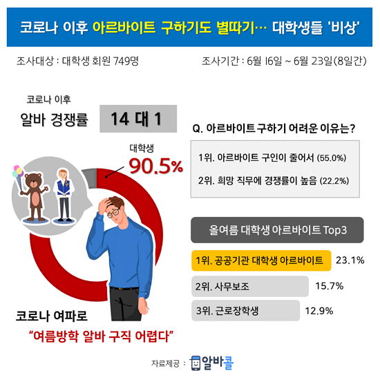 <±×¸². ¹Ù·Î¸éÁ¢ ¾Ë¹Ù¾Û ¾Ë¹ÙÄÝ Á¶»ç°á°ú, ´ëÇлýÀÌ ¹àÈù ¾Æ¸£¹ÙÀÌÆ® °æÀï·üÀº 14 ´ë 1·Î ³ªÅ¸³µ´Ù.>