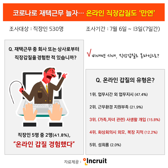 <±×¸². Ãë¾÷Æ÷ÅÐ ÀÎÅ©·çÆ® Á¶»ç°á°ú, Á÷ÀåÀÎ 5¸í Áß 2¸íÀº ¡®¿Â¶óÀÎ Á÷Àå°©Áú¡¯À» °æÇèÇÑ °ÍÀ¸·Î Á¶»çµÆ´Ù.>