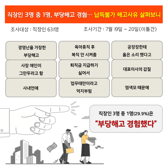 ÇØ°íÀ¯ÇüÀº ¡â±Ç°í»çÁ÷(45.9%) ¡âºÎ´çÇØ°í(29.9%) ¡âÁ¤¸®Çذí¤ý±¸Á¶Á¶Á¤(24.2%) ¼øÀ¸·Î Áý°èµÆ´Ù. ±Ù·Î±âÁعý 23Á¶¿¡ µû¸£¸é »ç¿ëÀڴ Ưº°ÇÑ ÀÌÀ¯ ¾øÀÌ ±Ù·ÎÀÚ¸¦ ÇØ°íÇÏÁö ¸øÇϵµ·Ï ±ÔÁ¤µÆ´Ù. ƯÈ÷ Á¤´çÇÑ »çÀ¯³ª ÀýÂ÷¸¦ ¹âÁö ¾ÊÀº ºÎ´çÇØ°í ºñÀ²ÀÌ Àüü ÇØ°íÀÚ 3¸íÁß 1¸í ²Ã¿¡ ÇØ´çµÈ´Ù´Â Á¡¿¡¼ ¿ì·Á¸¦ ÀھƳ´Ù.