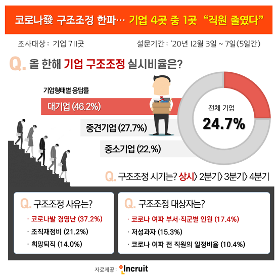 <±×¸². Ãë¾÷Æ÷ÅÐ ÀÎÅ©·çÆ® Á¶»ç°á°ú ¿ÃÇØ ´ë±â¾÷ÀÇ 46.2%°¡ »ó½Ã ±¸Á¶Á¶Á¤À» ÁøÇàÇÑ °ÍÀ¸·Î ³ªÅ¸³µ´Ù.>