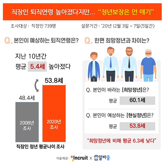 ÀÌ·¸µí Á÷ÀåÀεéÀÌ ¿¹»óÇÏ´Â º»ÀÎÀÇ Çö½ÇÀûÀÎ ÅðÁ÷¿¬·ÉÀÌ Áö³ 10³â°£ 5³â ÀÌ»ó ´Ã¾î³µ´Ù°í´Â ÇÏÁö¸¸, ¿©ÀüÈ÷ ¹ýÁ¤ Á¤³âÀÎ 60¼¼º¸´Ù´Â À̸¥ ¼öÁØÀÌ´Ù.