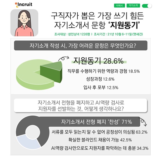 Ãë¾÷Æ÷ÅÐ ÀÎÅ©·çÆ®¿Í ¹Ù·Î¸éÁ¢ ¾Ë¹ÙÄÝ(´ëÇ¥ÀÌ»ç ¼¹Ì¿µ)Àº ¡®ÀÚ±â¼Ò°³¼¿¡ ´ëÇÑ ±¸Á÷ÀÚÀÇ »ý°¢¡¯À» ÁÖÁ¦·Î ´ëÇлý°ú ÃëÁØ»ý, ÀÌÁ÷ Èñ¸Á Á÷ÀåÀÎ µî 1,226¸í¿¡°Ô ¼³¹® Á¶»ç¸¦ ÁøÇàÇß´Ù.