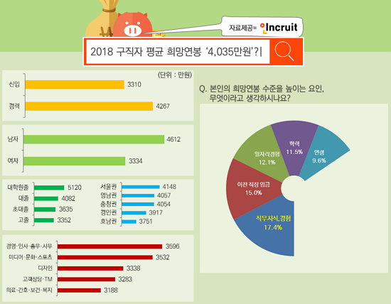 ¿ÃÇØ ±¸Á÷ÀÚµéÀÌ Èñ¸ÁÇÏ´Â ÃÖ´ë ¿¬ºÀ Æò±ÕÀº 4,035¸¸¿øÀ̸ç, ÃÖ¼ÒÈñ¸Á ¼ÒµæÀº 3,732¸¸¿ø ¼±ÀÎ °ÍÀ¸·Î Áý°èµÆ´Ù.