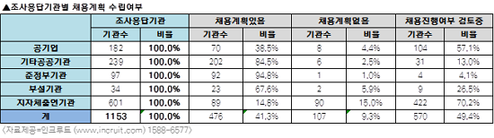 ¡ã ¡°°ø°ø±â°ü ä¿ë À±°û ÀâÈ÷³ª¡± ¿ÃÇØ ä¿ë°èȹ êó ¡®41.3%¡¯, ä¿ë°èȹ Ùí ¡®9.3%¡¯¡¦ °ËÅäÁß ¡®49.4%¡¯