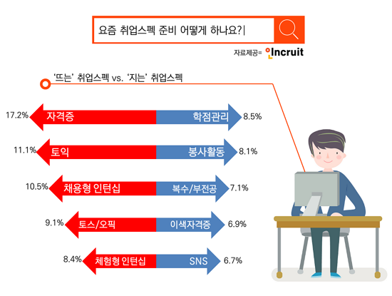 º¯ÈÇÏ´Â ±¸Á÷ Æ®·»µå... ¶ß´Â ½ºÆå 1À§ ¡®Á÷¹«ÀÚ°ÝÁõ¡¯ vs Áö´Â ½ºÆå 1À§ ¡®ÇÐÁ¡°ü¸®'