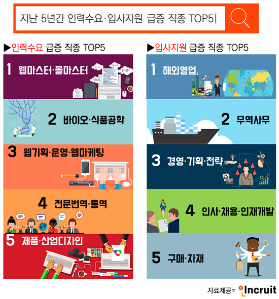 ÃÖ±Ù 5³â°£ ÀαâÁ÷Á¾ Æ®·»µå »ìÆìº¸´Ï¡¦Àη¼ö¿ä´Â ¡®À¥¸¶½ºÅÍ¡¯, ÀÔ»çÁö¿øÀº ¡®Çؿܿµ¾÷¡¯ °¡Àå ´Ã¾î