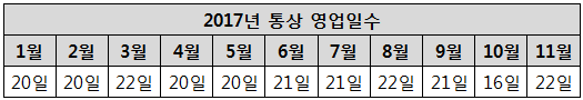 <Ç¥1. 2017³â ¿ùº° Åë»ó ¿µ¾÷Àϼö>