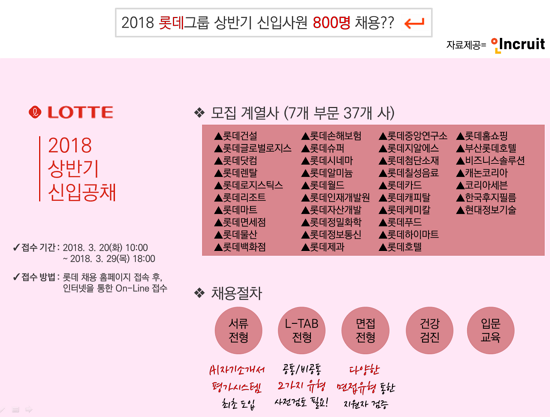 29ÀÏ(¸ñ) ¼·ùÁ¢¼ö ÀÌÈÄ¿¡´Â ¼·ùÀüÇü, L-TAB ÀüÇü, ¸éÁ¢ÀüÇüÀ» °ÅÃÄ °Ç°°ËÁø, ÀÔ¹® ±³À°À» ÁøÇàÇÑ´Ù. L-TAB(Lotte Talent Assessment Battery)Àº ·Ôµ¥±×·ìÀÇ Á¶Á÷¡¤Á÷¹«ÀûÇÕµµ °Ë»ç·Î, °ú¸ñÀº ¾ð¾îÀÌÇØ/¹®Á¦Çذá/ÀÚ·áÇØ¼®/¾ð¾î³í¸®·Î ±¸¼ºµÇ´Â [°øÅëÀ¯Çü]°ú ¾ð¾îÀÌÇØ/¹®Á¦Çذá/ÀÚ·áÇØ¼®/¼ö¸®°ø°£À¸·Î ±¸¼ºµÇ´Â [ºñ°øÅëÀ¯Çü]À¸·Î ³ª´¶´Ù. Ä¡·¯¾ß ÇÏ´Â Á÷¹«Àû¼º°Ë»ç À¯ÇüÀº °è¿»ç¿Í ¸ðÁý Á÷¹«¿¡ µû¶ó ´Þ¶óÁö¹Ç·Î, Áö¿ø Àü L-TAB ±¸ºÐÀÌ [°øÅë]ÀÎÁö [ºñ°øÅë]ÀÎÁö¸¦ È®ÀÎÇØ º¸¾Æ¾ß ÇÑ´Ù.