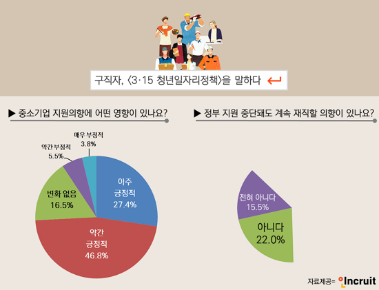Àüü ÀÀ´äÀÚ¸¦ ´ë»óÀ¸·Î '¸¸¾à 3³â °£ Á¤ºÎ Áö¿øÀ» ¹Þ´Â´Ù´Â Á¶°Ç¿¡ Áß¼Ò±â¾÷¿¡ ÀÔ»ç ¹× ÀçÁ÷ÇÏ´Ù°¡, ÀÌÈÄ Áö¿øÀÌ Áß´ÜµÉ °æ¿ì °è¼Ó ÀçÁ÷ÇÒ ÀÇÇâÀÌ ÀÖ´ÂÁö'¸¦ ¹¯´Â Áú¹®¿¡ ȸÀÇÀûÀÎ ¹ÝÀÀÀ» º¸ÀÎ ÀÀ´äÀÚ´Â 37.5%·Î ³ô°Ô ³ªÅ¸³µ´Ù(ÀüÇô ¾Æ´Ï´Ù 15.5% + ¾Æ´Ï´Ù 22.0%). ÀÌ´Â '±×·¡µµ °è¼Ó ÀçÁ÷ÇϰڴÙ'°í ´äÇÑ ±¸Á÷ÀÚÀÇ ºñÀ²(27.6%) ´ëºñ 10% °¡·® ³ôÀº ¼öÄ¡´Ù.